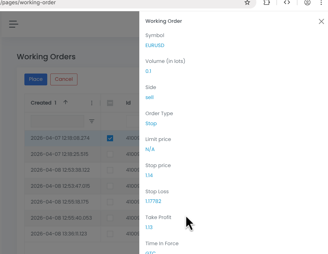 In the Working Order overview, we displayed the current SL/TP values. Furthermore, these values are now automatically populated in the Working Order editing form: