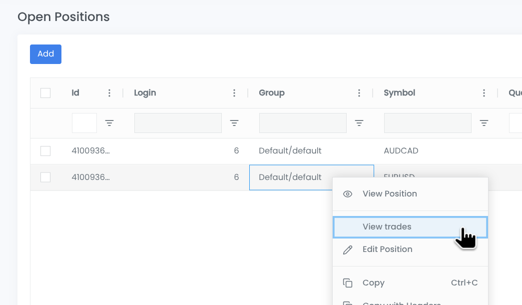 We’ve added the ability to view trades for an open position. If you select “View trades” from the context menu, you’ll be redirected to the Trade History page with filters automatically applied to show only the trades for that position: