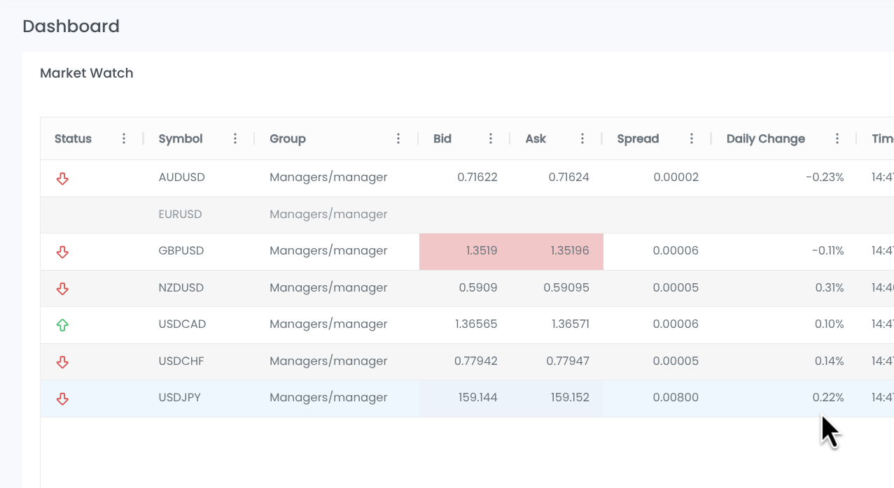 - We have implemented a nightly job that stores a timestamped snapshot of all trading components (Liquidity Providers, FIX Servers, MT4/MT5 servers, and Matching Engines) into ClickHouse. This enables clients to join tick, top-of-book, and order book market data with human-readable component names for their internal reporting and analytics.