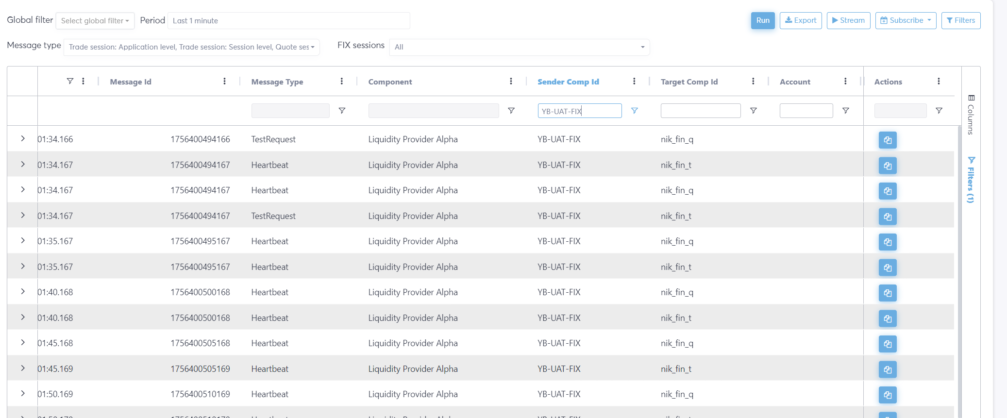 • We have implemented filtering options for Sender Comp Id and Target Comp Id in FIX messages from Liquidity Providers and FIX Servers.