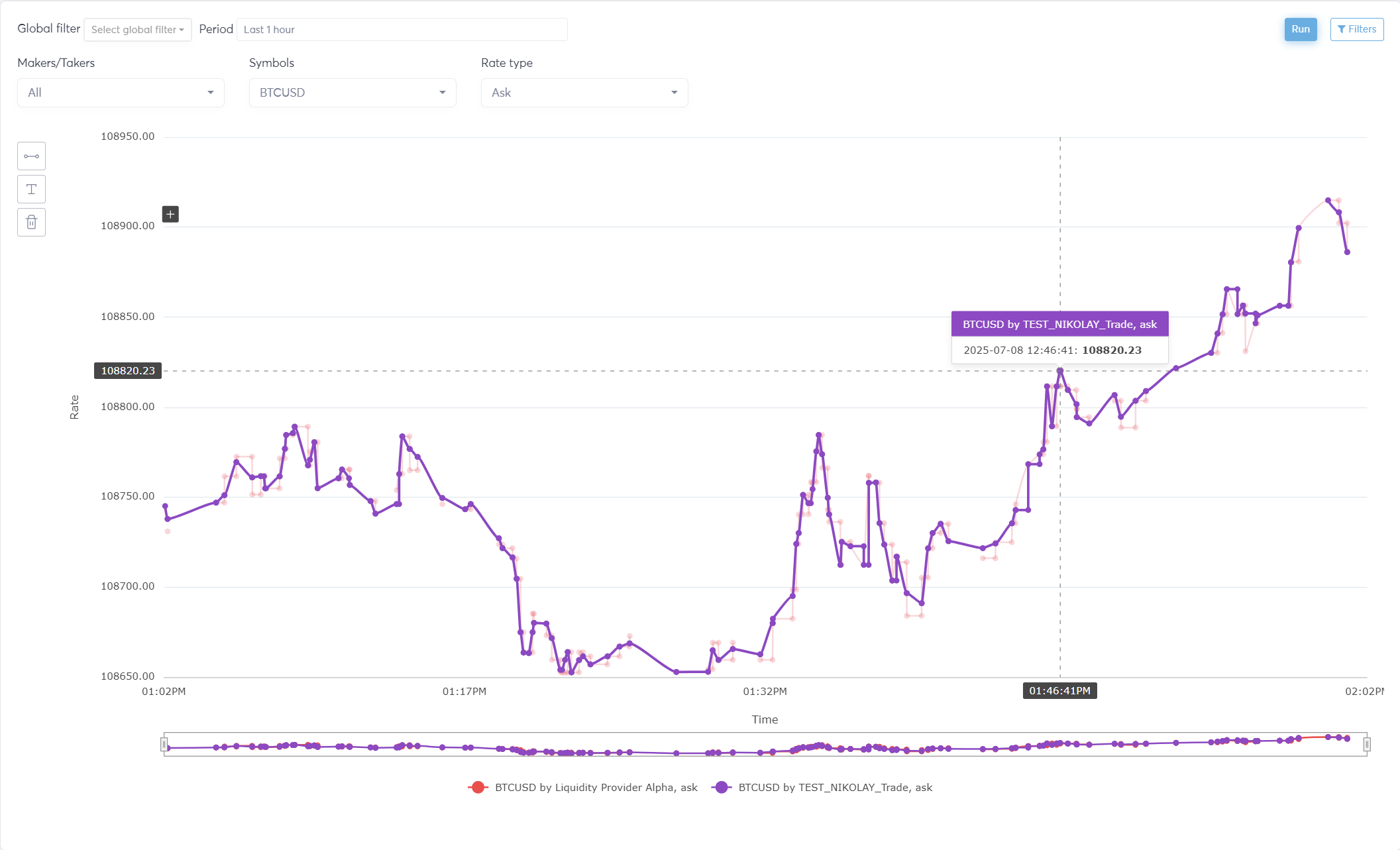 • We have added the ability to see and compare prices from different Takers and Liquidity Providers on the same graph using our unified Ticks Comparison Report.
