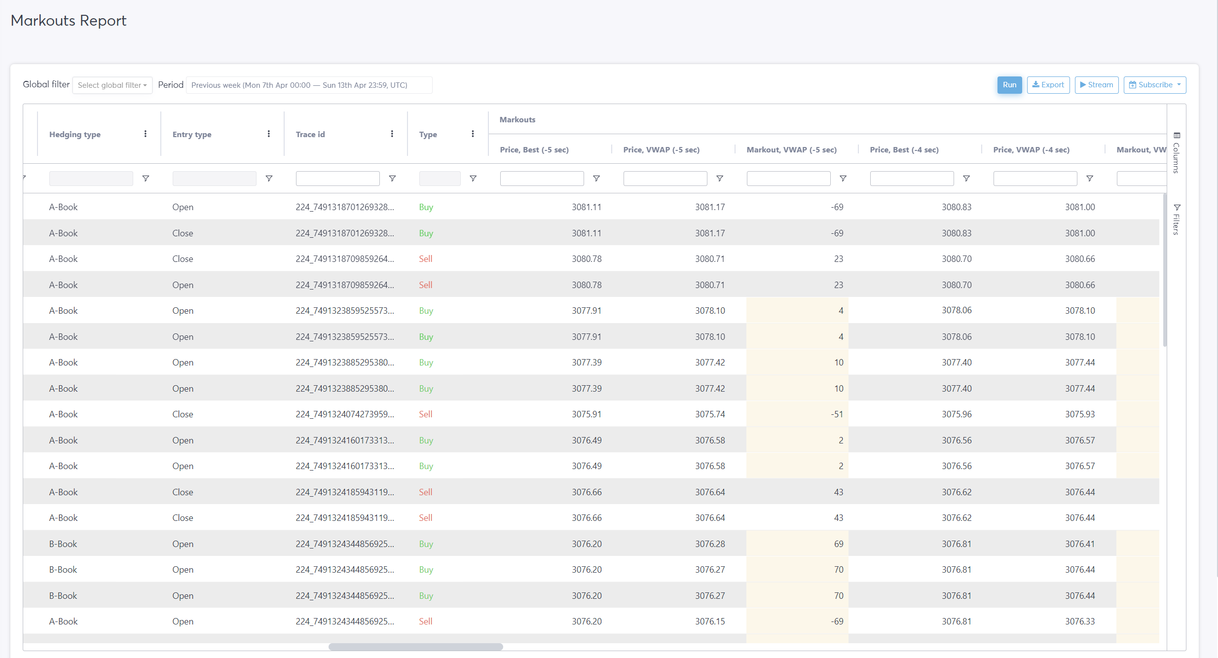 • We added a new column TotalMarkupInPips in the Trade Blotter report