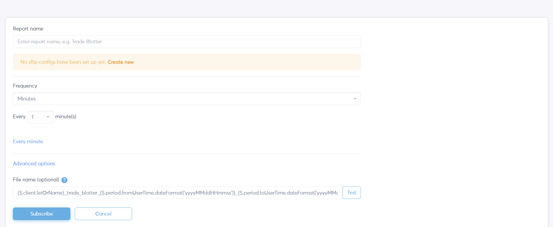 Trade Blotter is powered by a fast and reliable API that delivers the data you need in seconds. You can also enable the streaming mode to get real-time updates on your trades as they happen. Additionally, you can subscribe to the report and receive it via email or upload it to your SFTP server at a frequency of your choice.